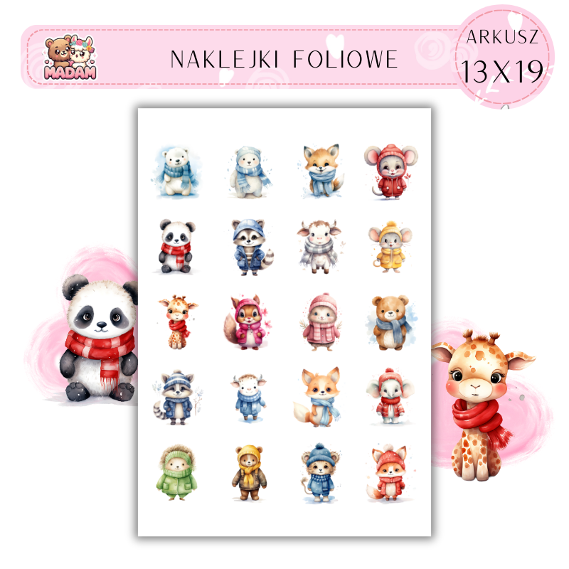 Naklejki Foliowe Zimowe Zwierzęta 13x19, Madam