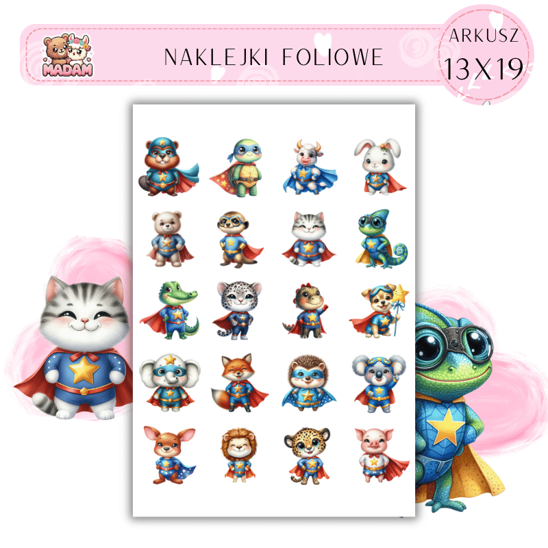 Naklejki Foliowe Zwierzęta Superbohaterowie 13x19, Madam