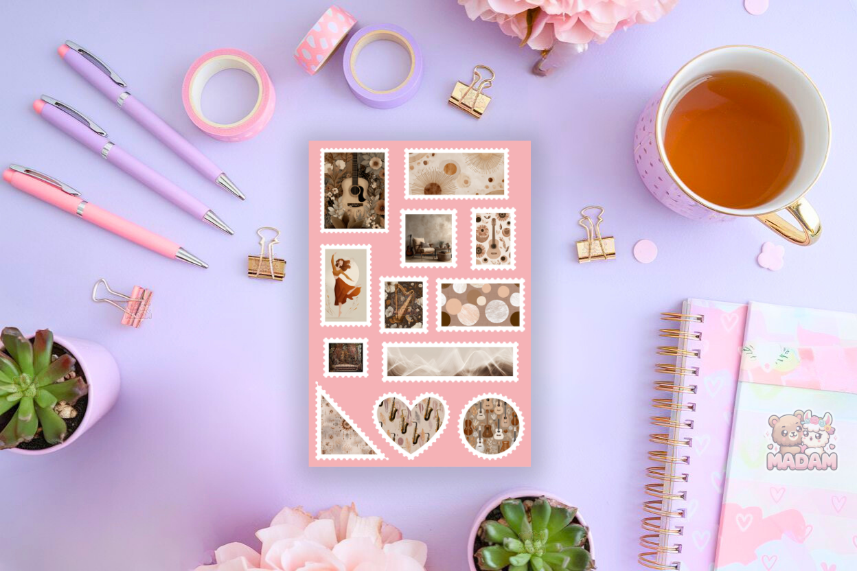 Naklejki Znaczki Pocztowe Boho Muzyka (Boho Music) Bullet Journal Scrapbooking - MaDam Creative