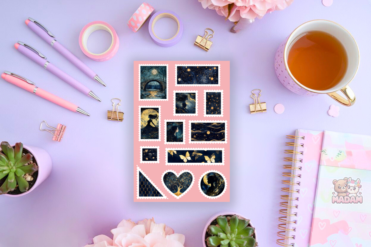 Naklejki Znaczki Pocztowe Magiczny Kosmos (Magical Celestial) Bullet Journal Scrapbooking - MaDam Creative