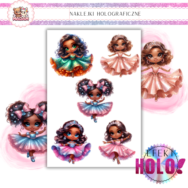 Naklejki foliowe Holograficzne Księżniczki z wodoodpornym klejem 5 sztuk 6 cm, MaDam