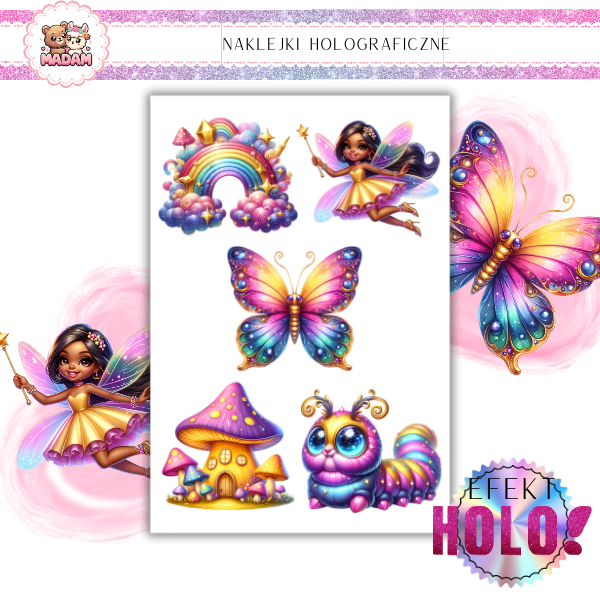 Naklejki foliowe Holograficzne Magiczny Świat z wodoodpornym klejem 5 sztuk 6 cm, MaDam