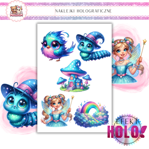 Naklejki foliowe Holograficzne Magiczny Świat z wodoodpornym klejem 5 sztuk 6 cm, MaDam