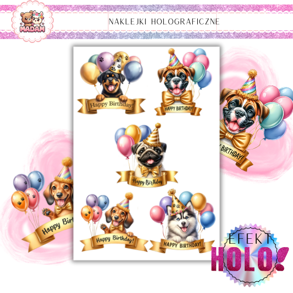 Naklejki foliowe Holograficzne Urodziny z wodoodpornym klejem 5 sztuk 6 cm, MaDam