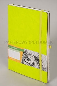 Notes a5 format 145x210 wstążka i gumka zamykająca i szlufka na długopis w kolorze okładki zaokrąglone rogi okładki oprawa elastyczna zintegrowana.Wyklejka z ozdobnego papieru.