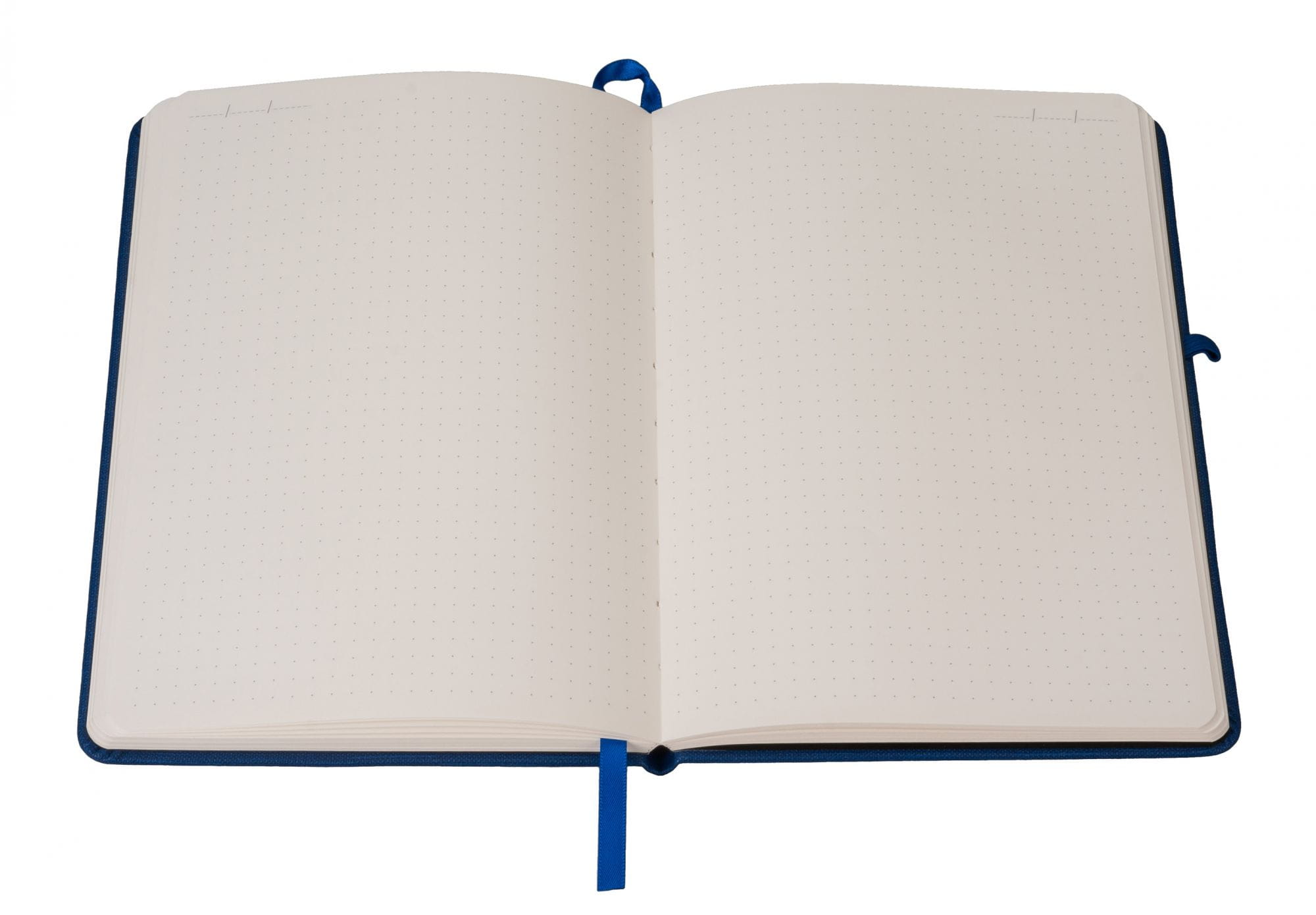 gramatura: 80 g liczba stron: 192 okładka: twarda materiał: skóra ekologiczna wymiary: 176x250 mm pozioma gumka zamykająca gumka na długopis zaokrąglone rogi wyklejka z czarnego papieru ozdobnego wnętrze: kropki koperta na luźne karteczki wstążka w kolorze okładki