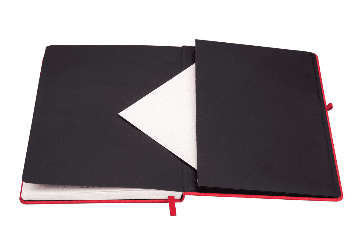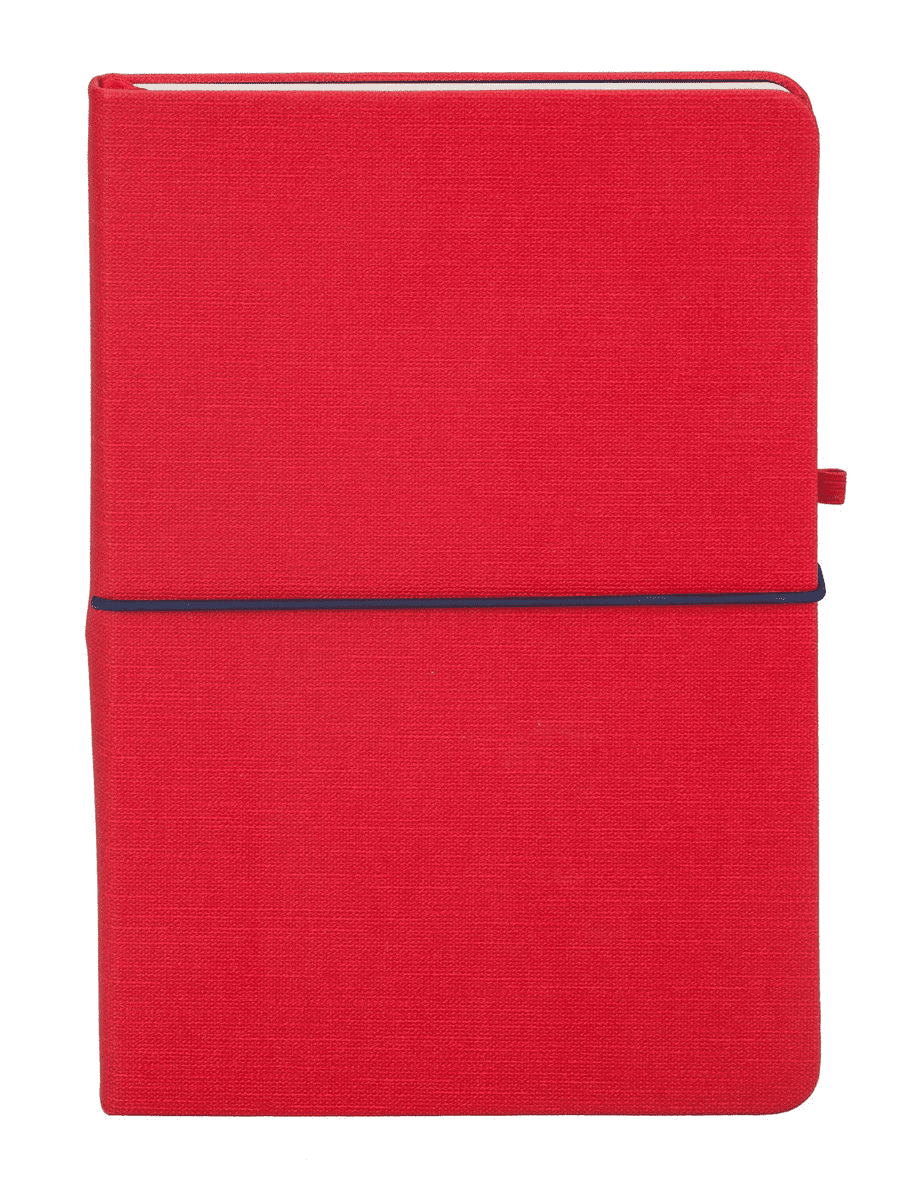 Notes A-5 Format 145x210 papier offsetowy 80 g wstążka i szlufka na długopis w kolorze okładki, zaokrąglone rogi bloku, oraz okładki, okładka twarda wyklejka z ozdobnego czarnego papieru, kieszonka na tylnej wyklejce zamykany na sprytną gumkę w poprzek. Kolor gumki kontrastujący.