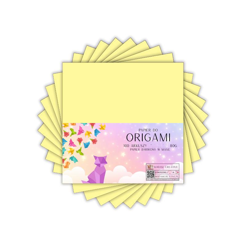 Papier do origami kwadraty 5x5 cm Pastelowy waniliowy żółty 100 arkuszy, MaDam Creative