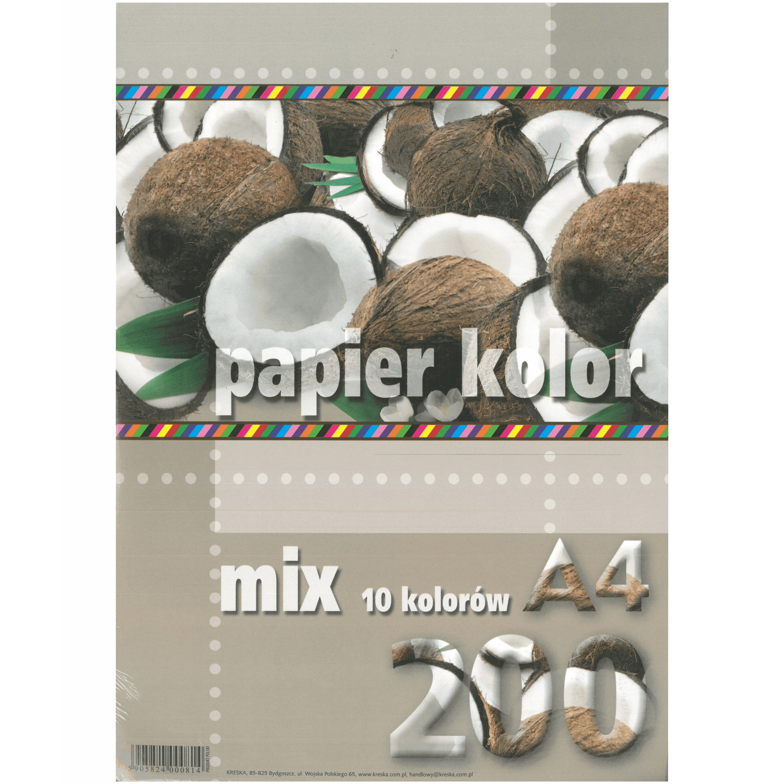 Papier kolorowy mix 10 kolorów A4 80g 200 ark., Kreska