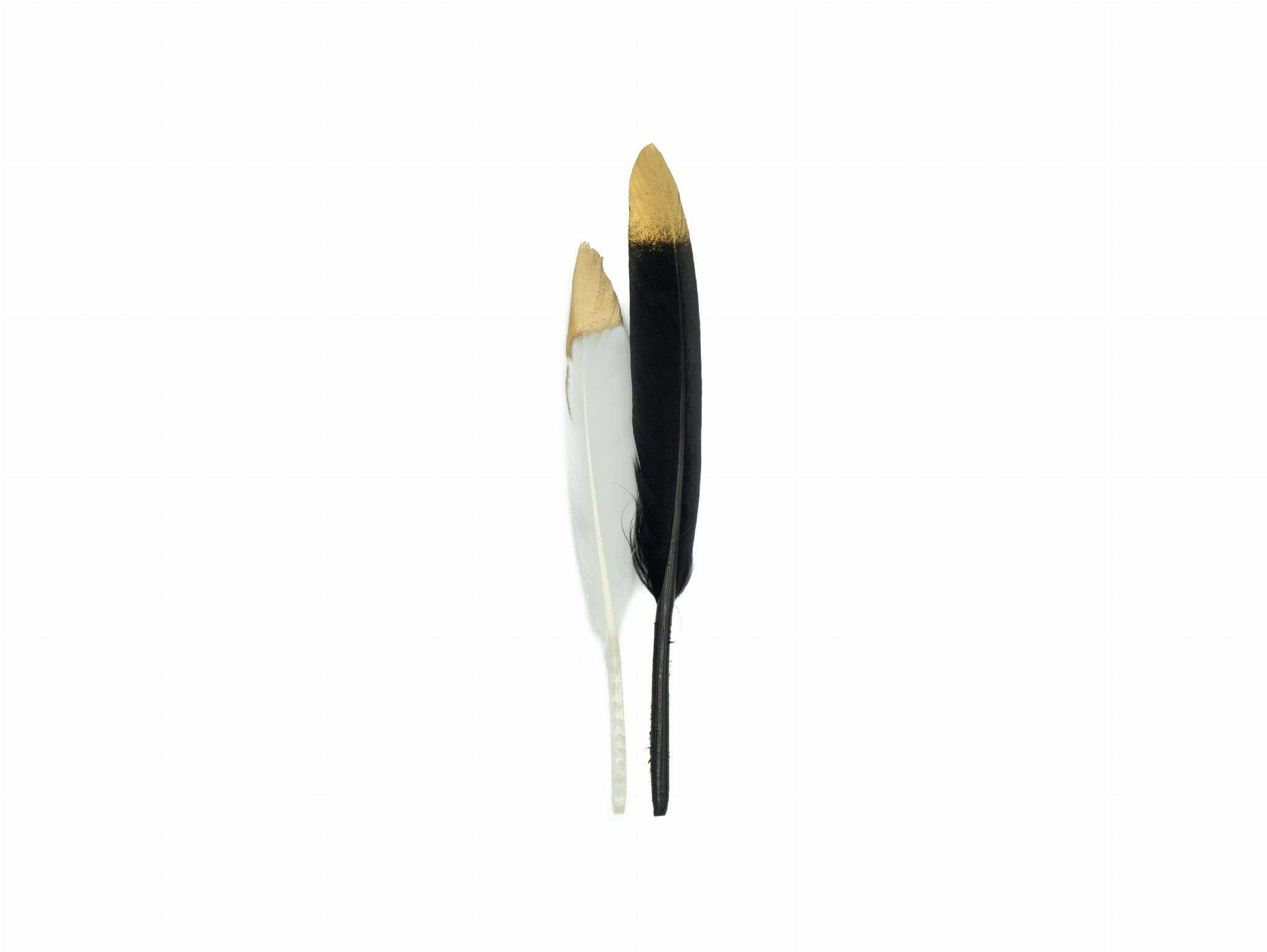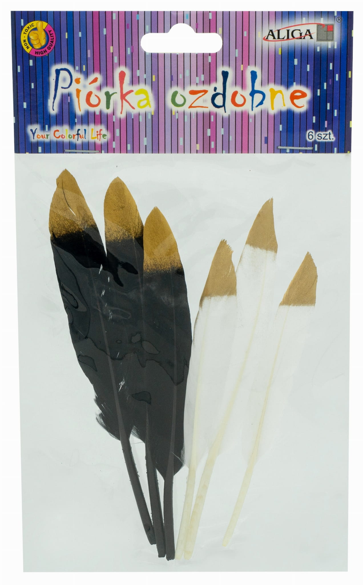 Piórka dekoracyjne lotki białe i czarne złocone 16,5 cm op 6 sztuk, Aliga