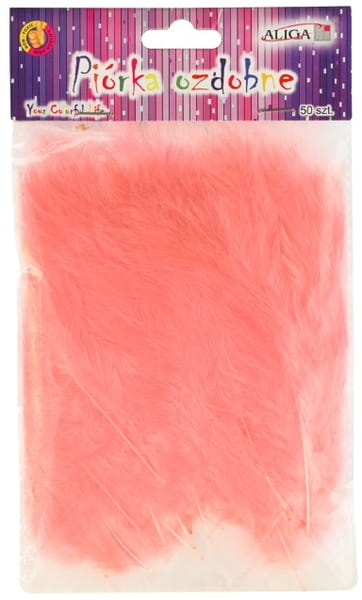 Piórka dekoracyjne różowe jasne 10-12 cm op ok. 50 sztuk, Aliga