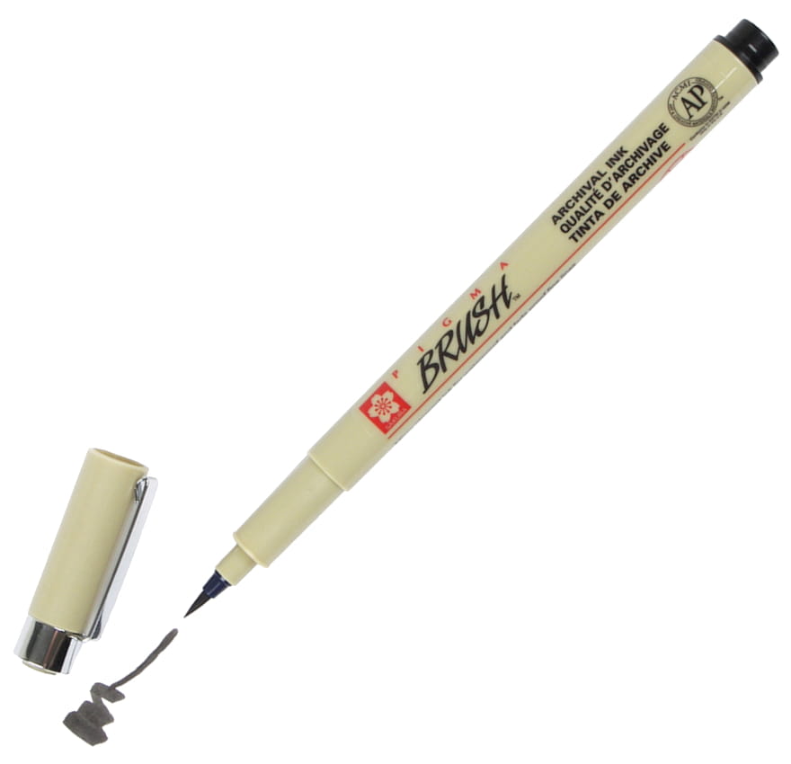 Pigma Brush to kreatywny pędzelek do markerów. Elastyczna miękka końcówka pędzla umożliwia różne grubości linii, dzięki czemu pędzel idealnie nadaje się do ilustrowania, pisania odręcznego, rysowania, kaligrafii i innych zastosowań dekoracyjnych. Unikalny atrament Sakura Pigma™ nie przesiąka przez papier, jest trwały, wodoodporny, odporny na blaknięcie, szybkoschnący i ma neutralne pH.