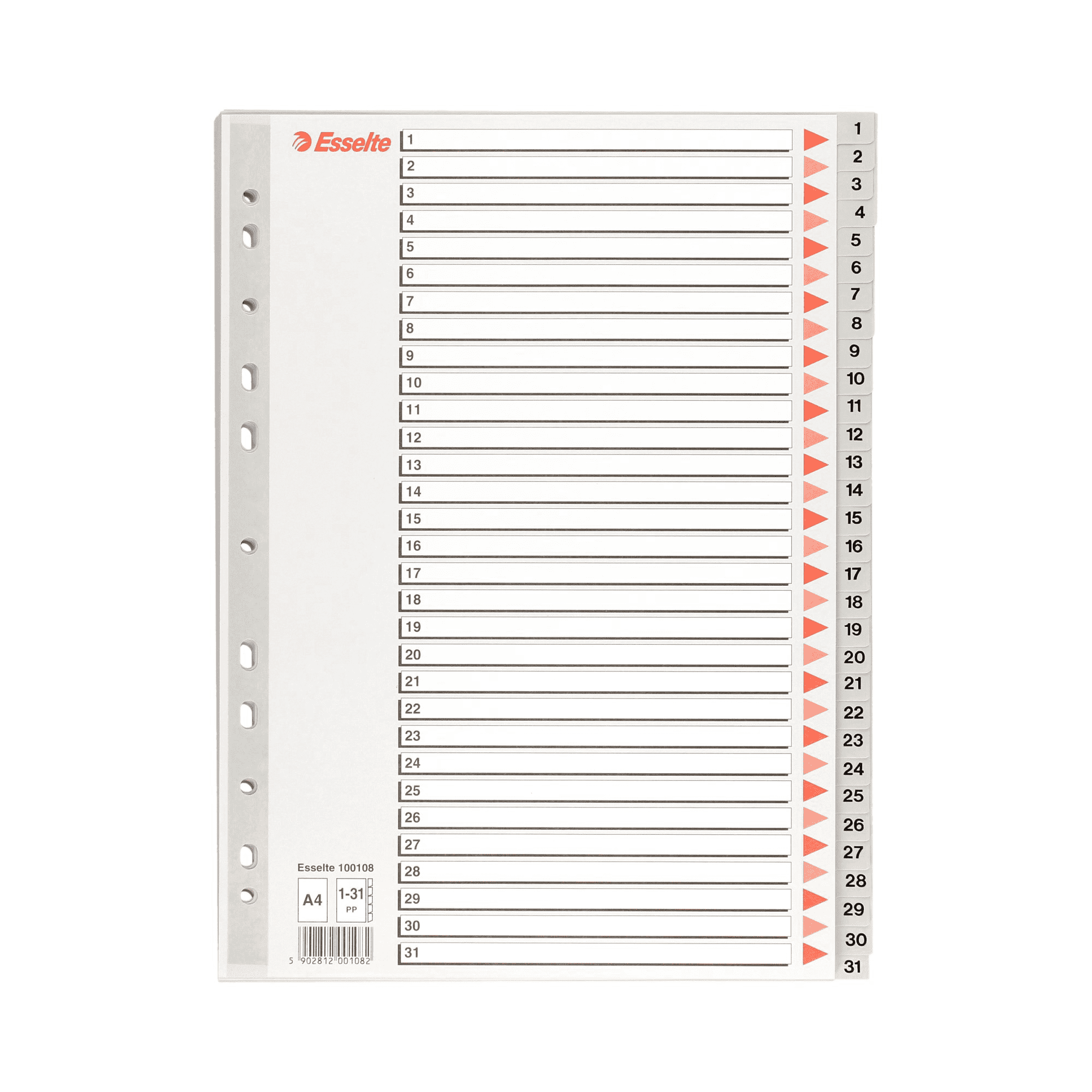 Przekładki do segregatora A4 1-31 PP szare, Esselte
