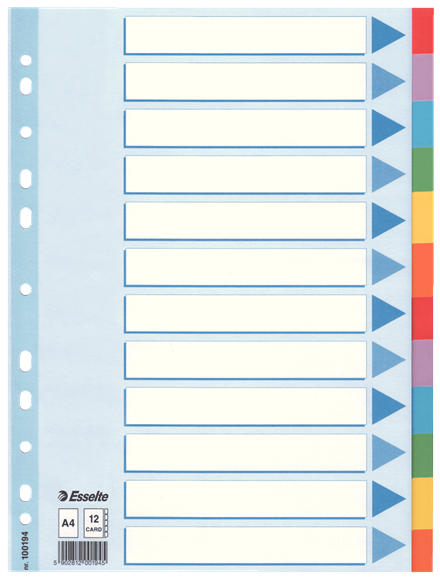 Przekładki do segregatora A4 12 kart z kolorowym indeksem, Esselte
