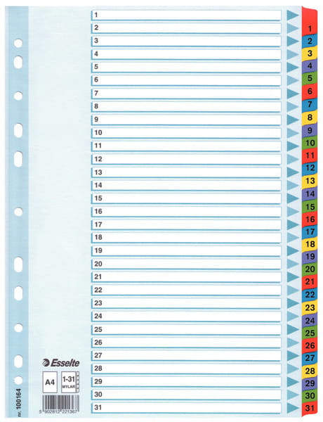 Przekładki do segregatora numeryczne A4 1-31 kolorowe registry, Esselte