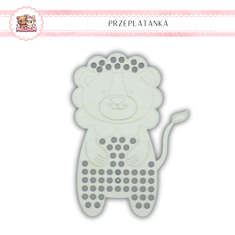 Przeplatanka drewniana Lew 20 cm otwór 8 mm, MaDam
