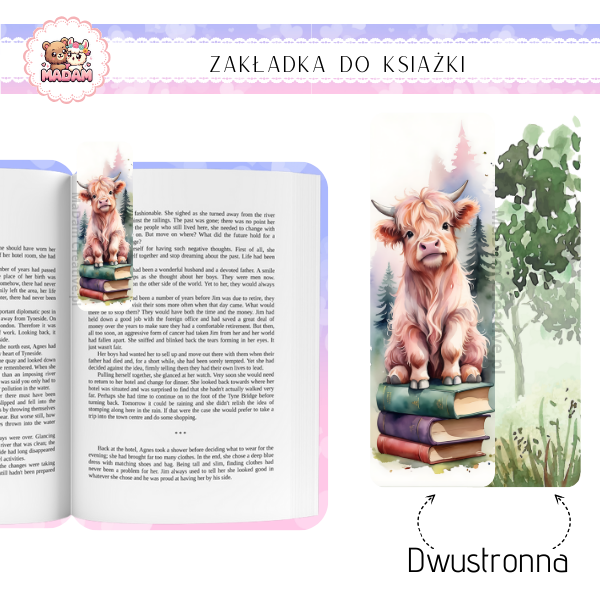 Zakładka do książki tradycyjna dwustronna Włochata Krowa, MaDam