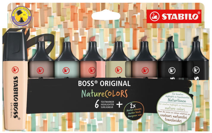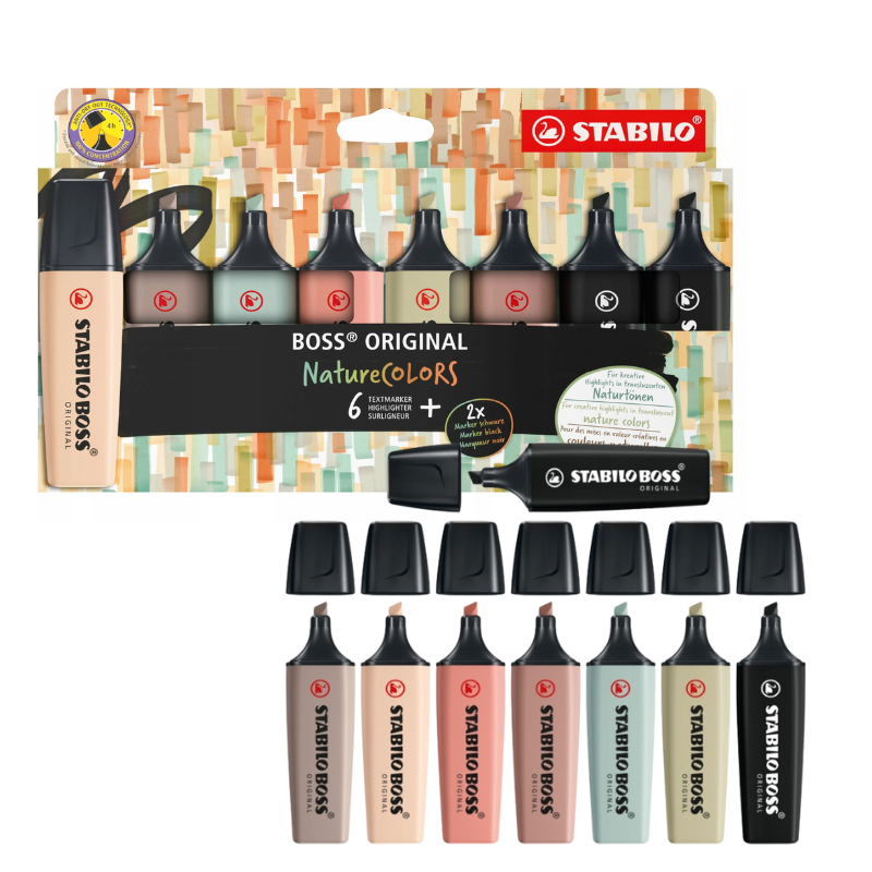 Zestaw zakreślaczy Stabilo Boss Nature Colors 8 sztuk - odkryj nowe zakreślacze w naturalnych kolorach ziemi!