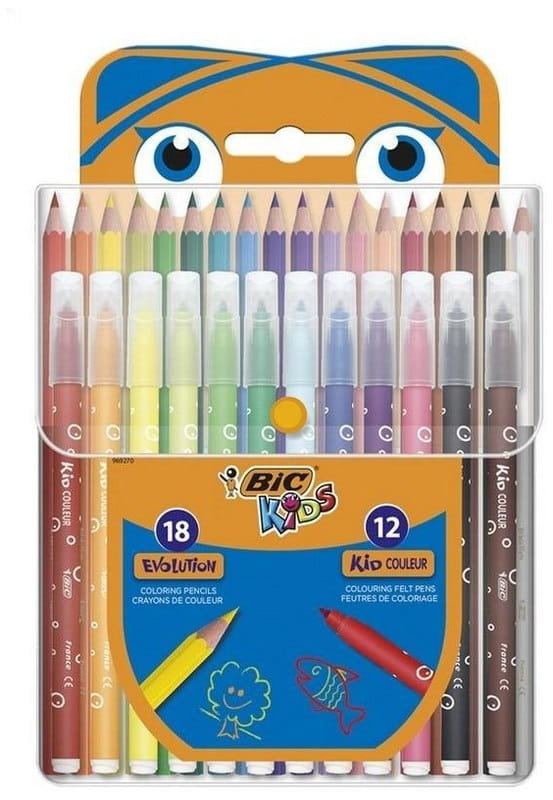 Zestaw 2 w 1 kredki 18 kolorów Evolution + flamastry 12 kolorów Kid Couleur, BiC