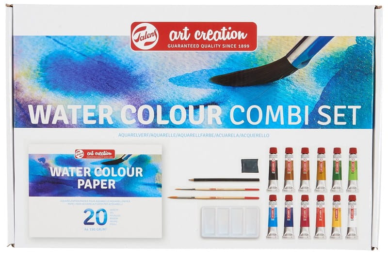 Zestaw malarski Farby akwarelowe 12 kolorów x 12 ml z blokiem malarskim i akcesoriami Art Creation, Talens