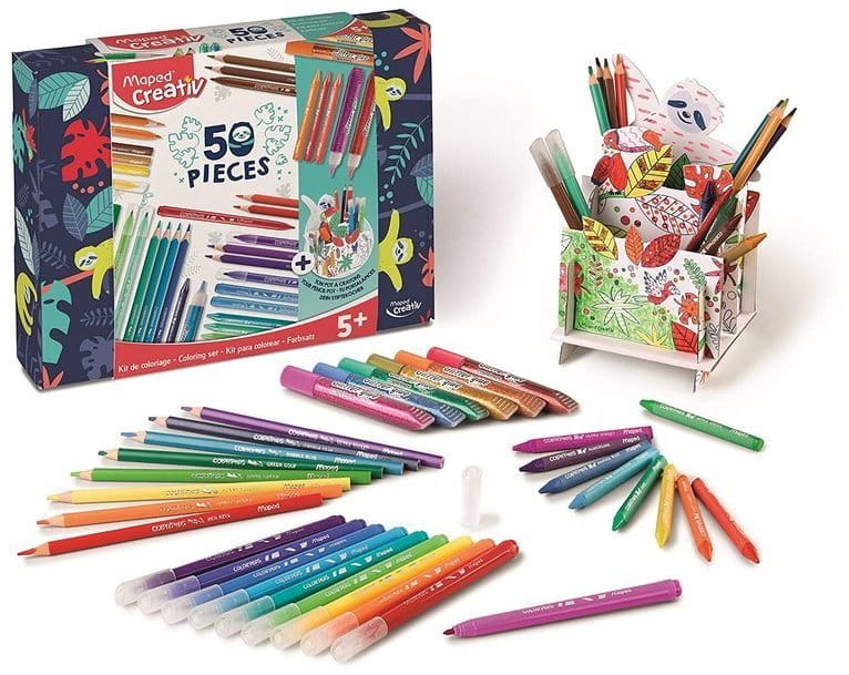 Kredki, flamastry i klej brokatowy - wszystko w jednym pudełku pełnym kolorów, gotowe do wykorzystania przez Małego Artystę podczas jego kreatywnej pracy. W każdym zestawie dodatkowo tekturowy pojemnik do samodzielnego złożenia i pokolorowania.