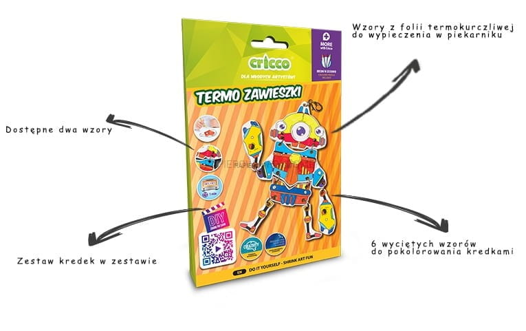Termo breloczki i termo zawieszki to produkty, których jeszcze nie znacie. Opakowanie zawiera zestaw wyciętych w odpowiednie kształty obrazków z termokurczliwej folii do samodzielnego pokolorowania kredkami. Po wypieczeniu w piekarniku folia kurczy się, tworząc kolorowe breloczki lub zawieszki. Samodzielnie wykonany breloczek do kluczy będzie najlepszym prezentem dla mamy i taty